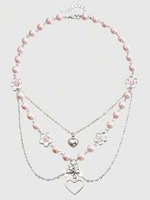 Kawaii 1 pièce Collier multicouche en forme de cœur avec faux perle rose, cadeau pour la Saint-Valentin, maman, mère, fête des mères