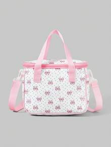 Kawaii 1 pièce Sac isotherme portable mignon de grande capacité avec décoration de nœud à pois roses