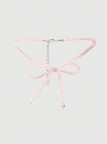Kawaii 1 pièce Collier féminin et doux avec perles et nœud rose