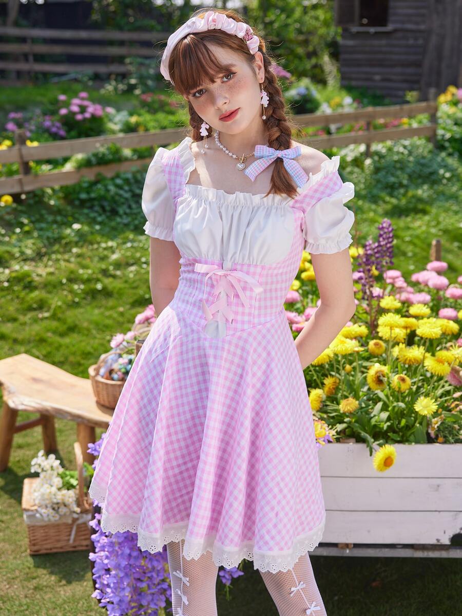 Kawaii Robe 2 en 1 À Carreaux À Lacets