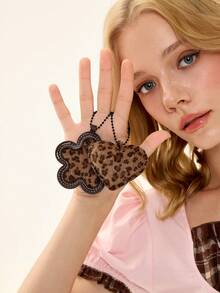Kawaii 2 pendentifs en peluche imprimé léopard, fleur mignonne imprimé léopard, pendentif de sac tridimensionnel imprimé léopard, style punk de haute qualité en PU peluche et métal pour téléphone portable