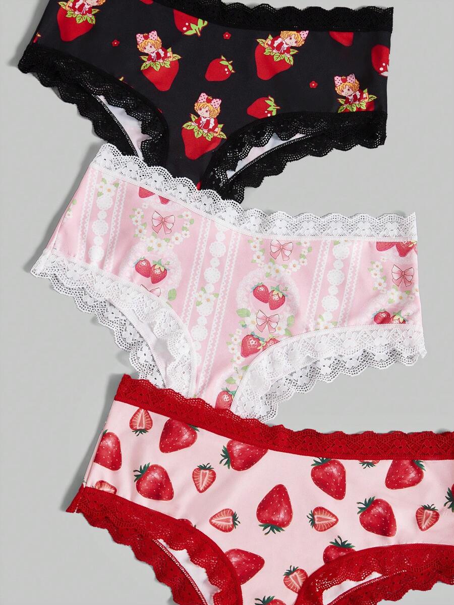Kawaii Ensemble De Sous-vêtements Triangle Fraise 3 Pièces
