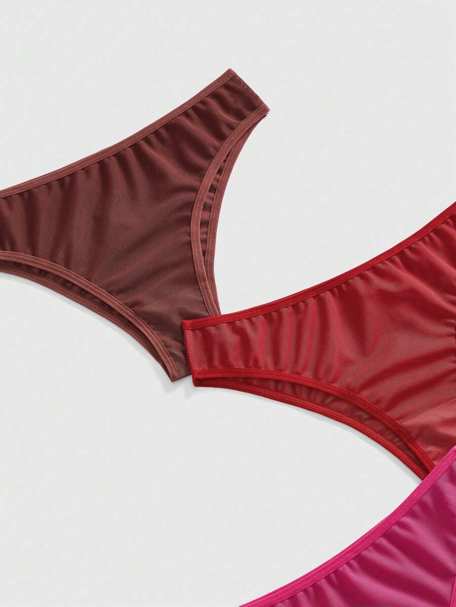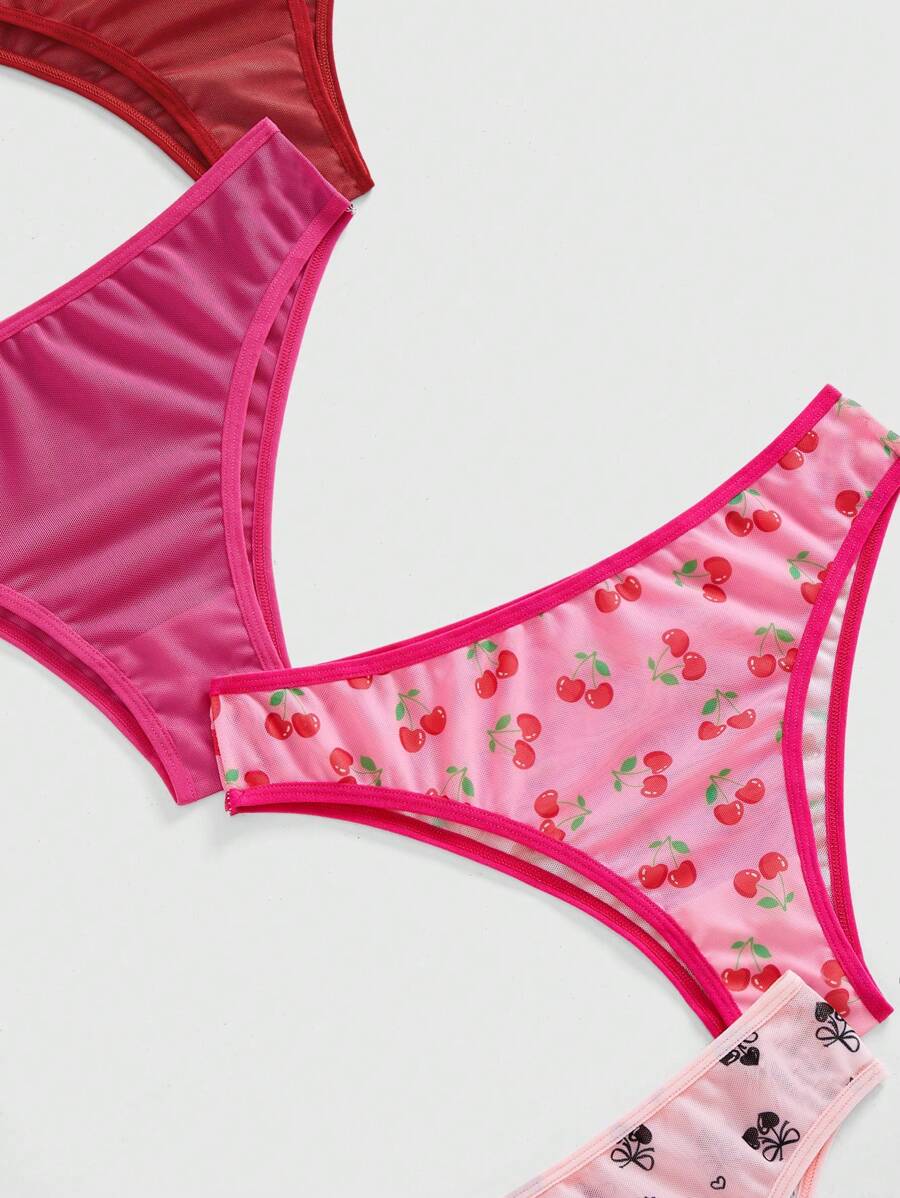 Kawaii 5 pièces/Set Ensemble de culottes de bikini colorbloquées à l'imprimé romantique de la Saint-Valentin cerise