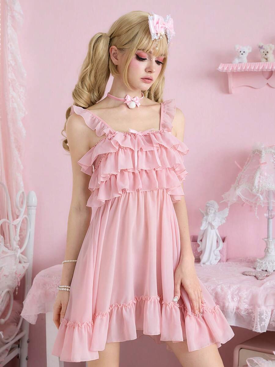Kawaii Ensemble de vêtements de nuit sexy composé d'une nuisette volantée transparente et minimaliste