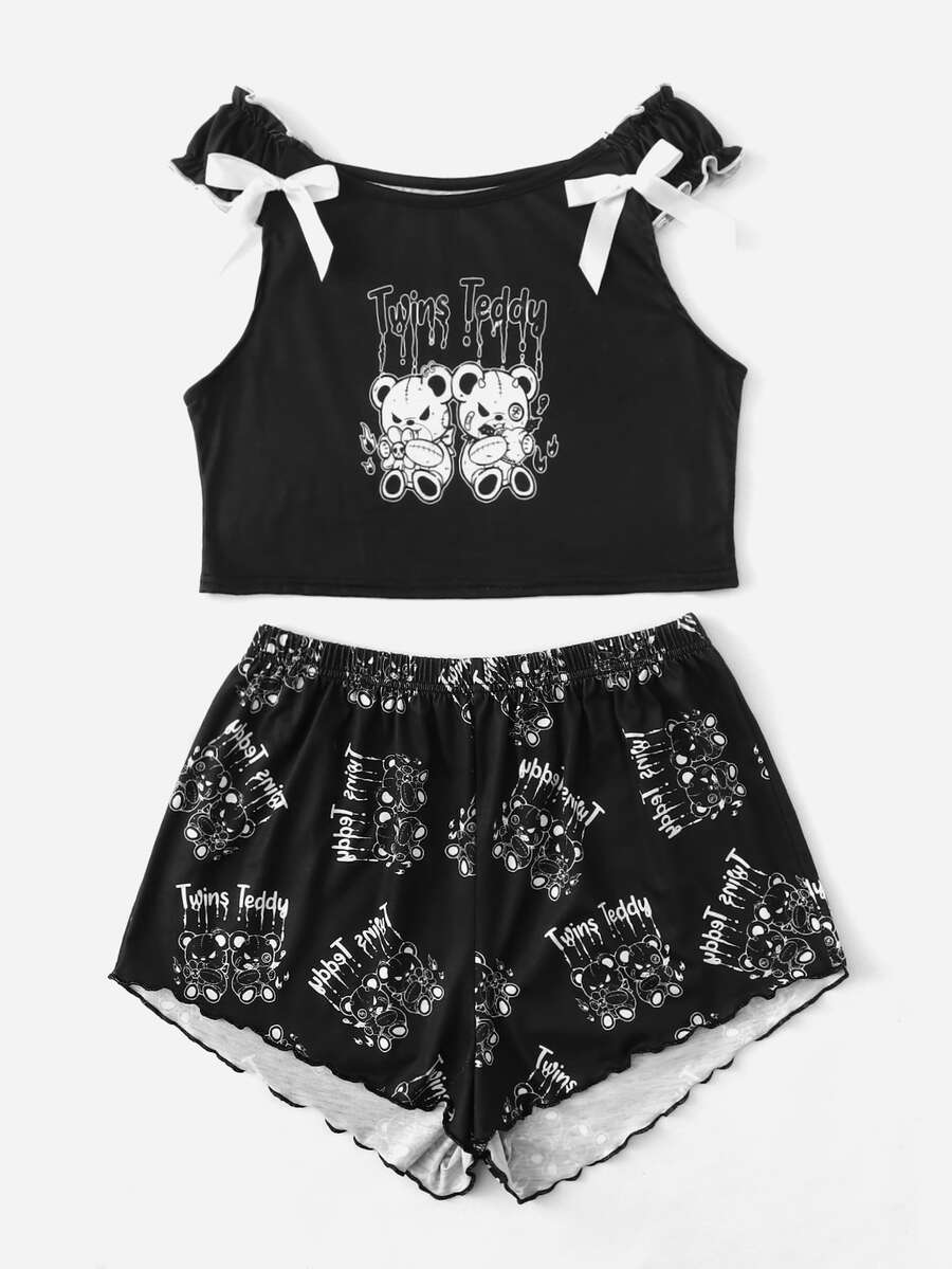 Ensemble de pyjama à imprimé ours à ourlet ondulé