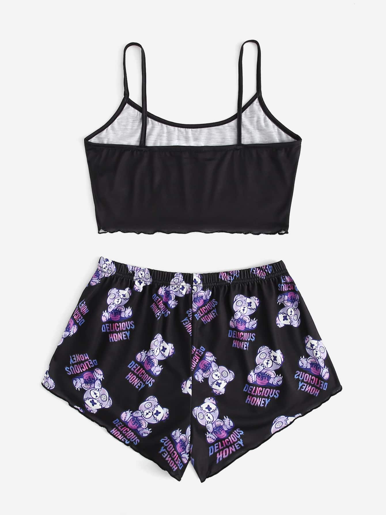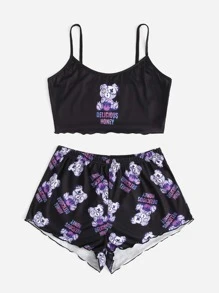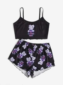Kawaii Ensemble de pyjama à imprimé ours dessin animé