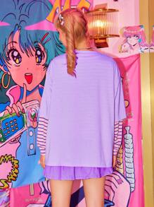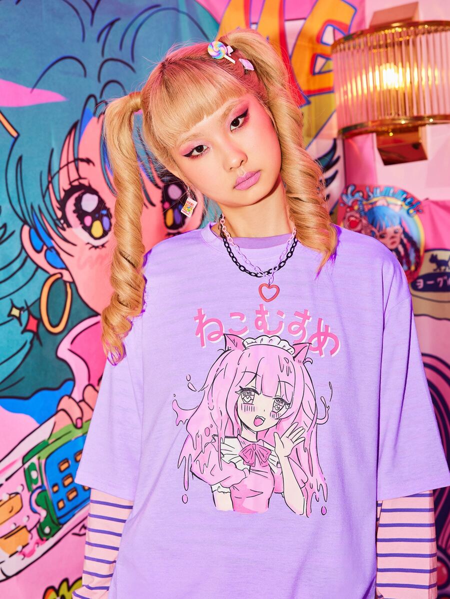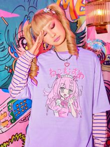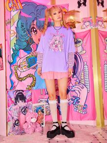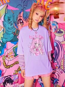 Kawaii T-shirt oversize à imprimé figure de dessin animé