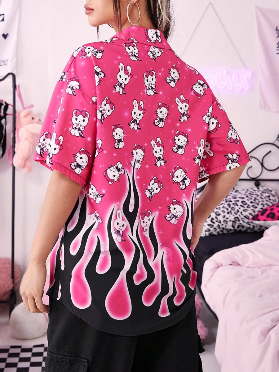 J-Fashion Chemise Dessin Animé & Imprimé Flamme Épaule tombante