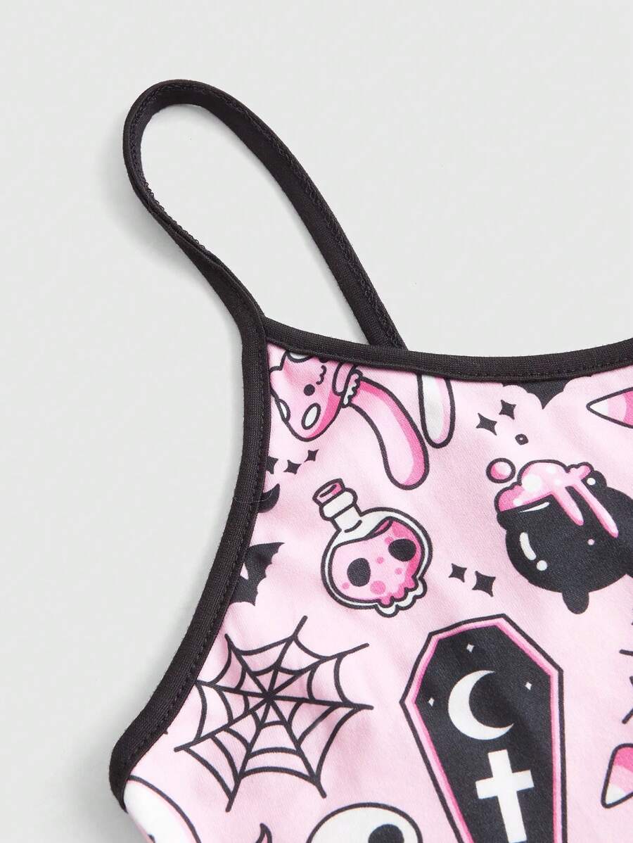 Kawaii Débardeur à liens contrastants graphiques de bande dessinée, école