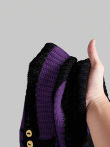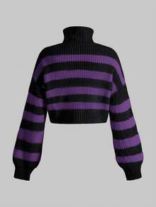 Pull col roulé rayé avec broderie de chat noir mignon et décontracté pour filles
