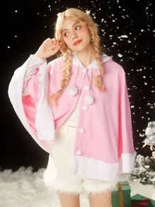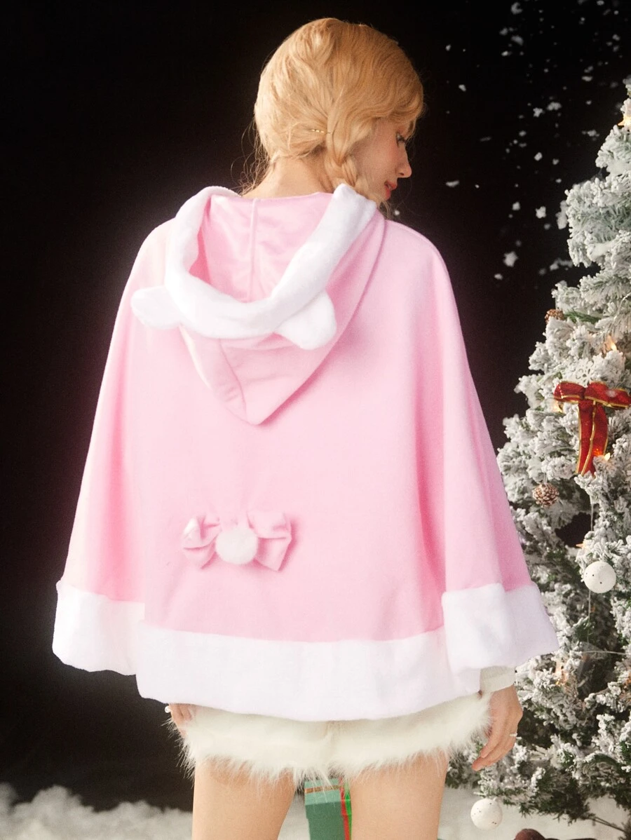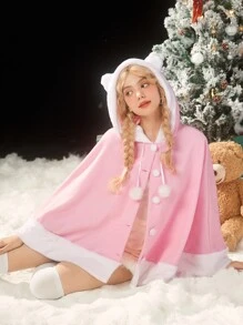 Kawaii Manteau cape Noël à ourlet duveteux à capuche