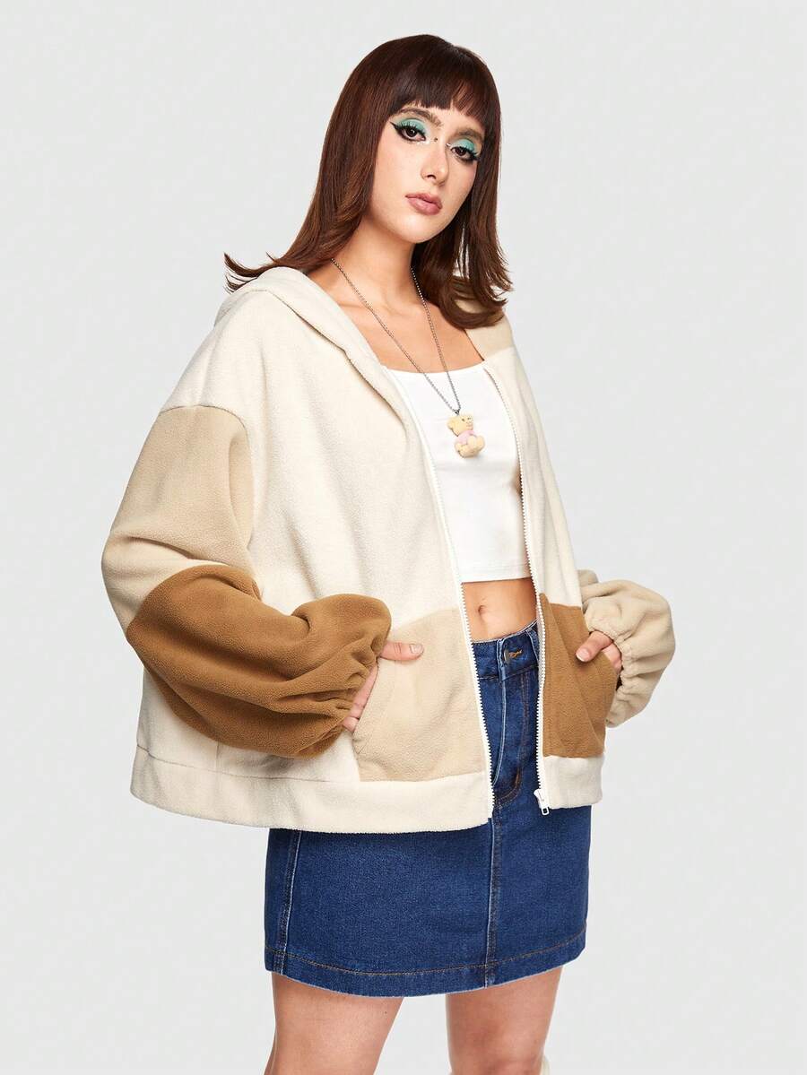 Kawaii Sweat-shirt À Capuche Zippé En Blocs De Couleur