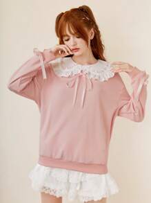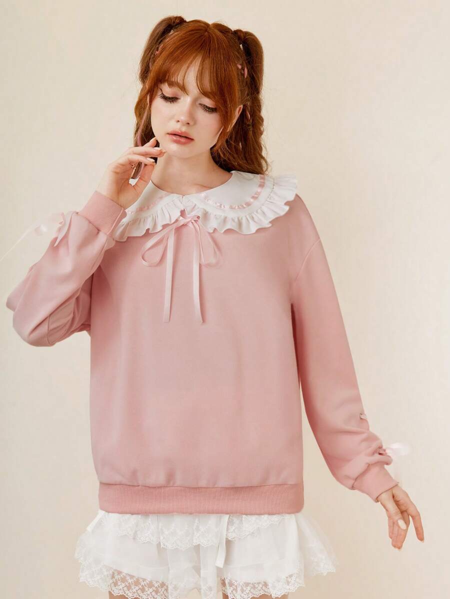 Kawaii Sweat-shirt À Col Contrastant À Nœud