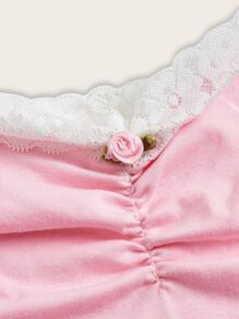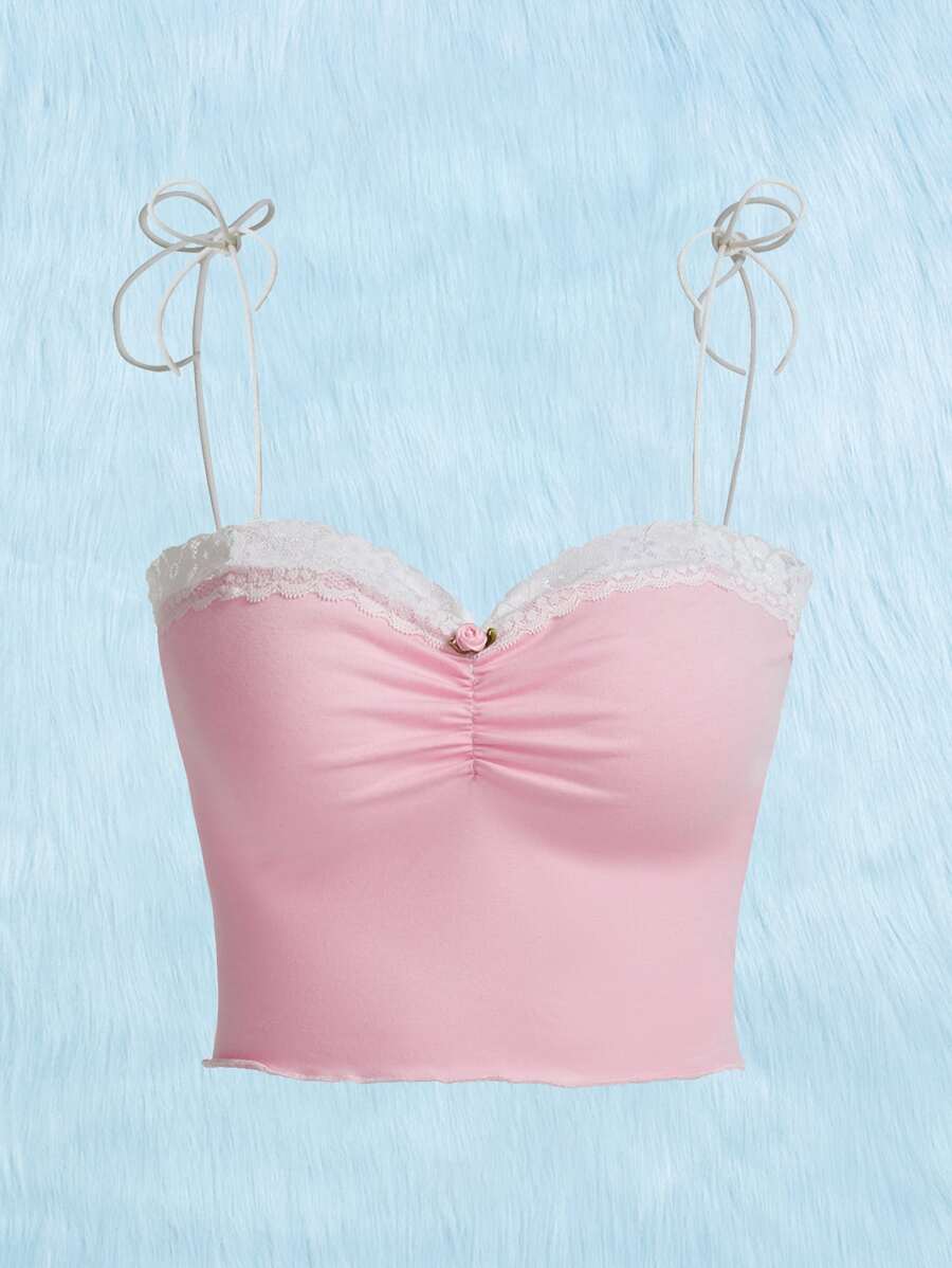 Kawaii Top à fines brides en dentelle à ruché
