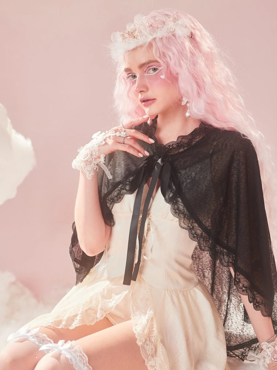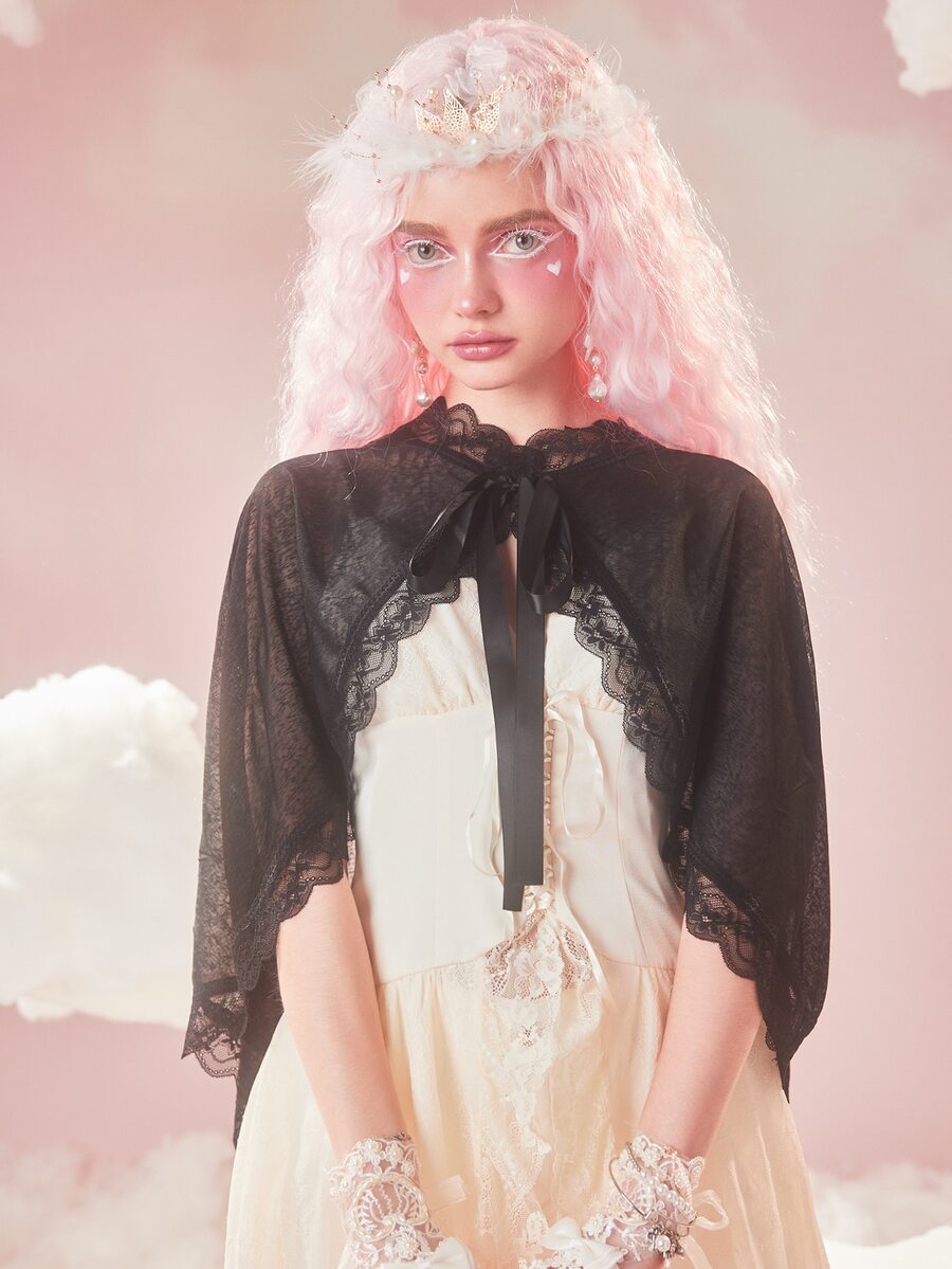Kawaii Manteaux pour femmes Dentelle contrastée Avec nœud Élégant Unicolore