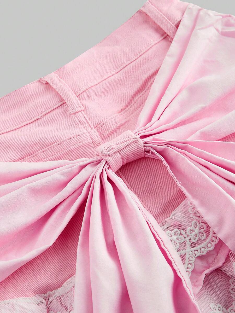 Kawaii Jupe mini en jean doux et mignon avec ourlet style gâteau pour femmes
