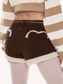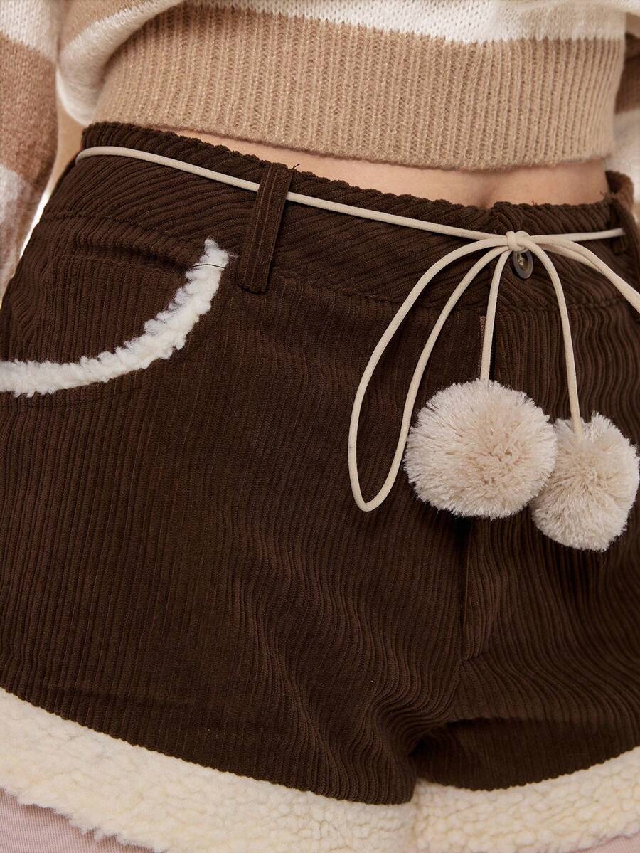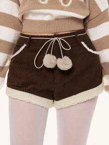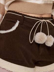 Kawaii Short en fausse fourrure marron mignon et patchwork pour femmes