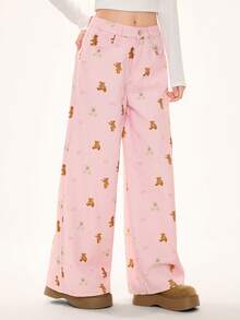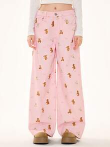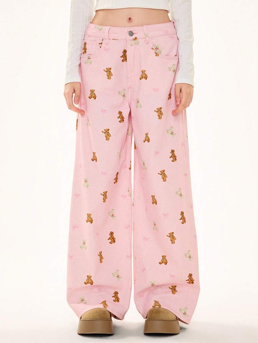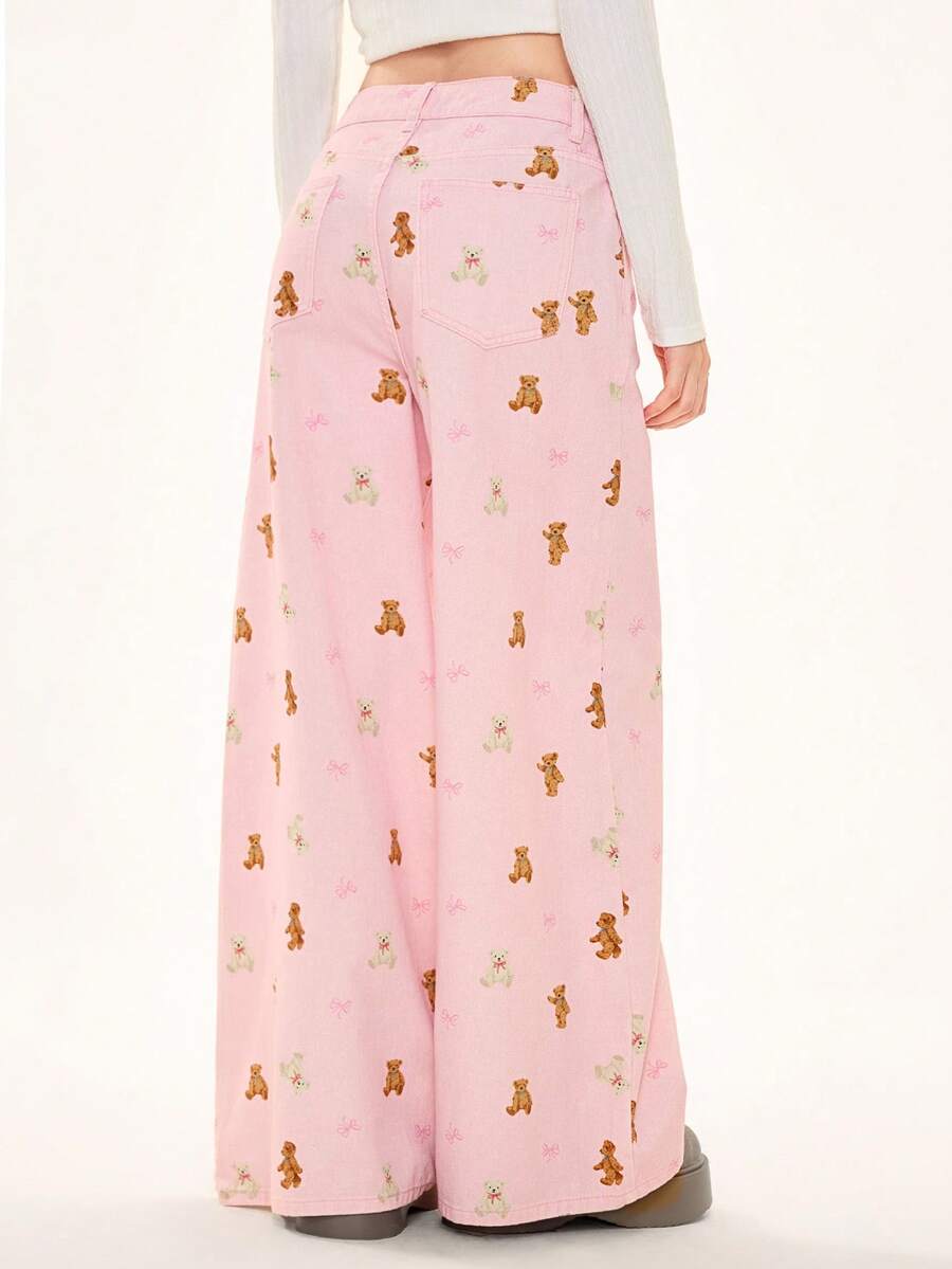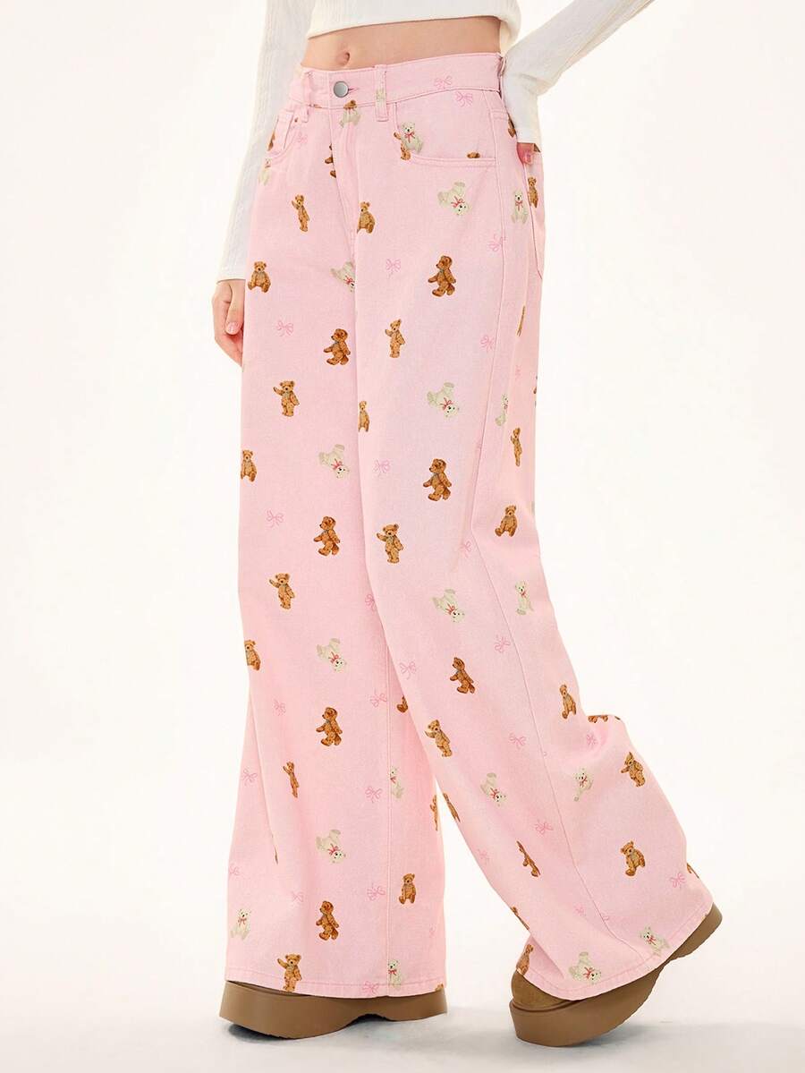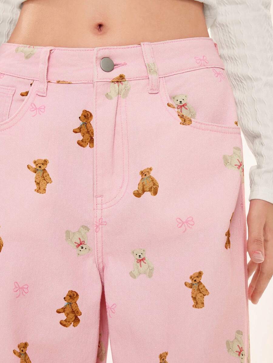 Jeans femme imprimé ours Hime Gyaru mignon et kawaii