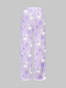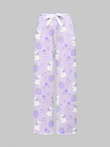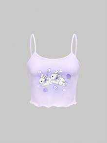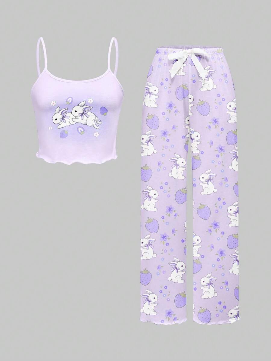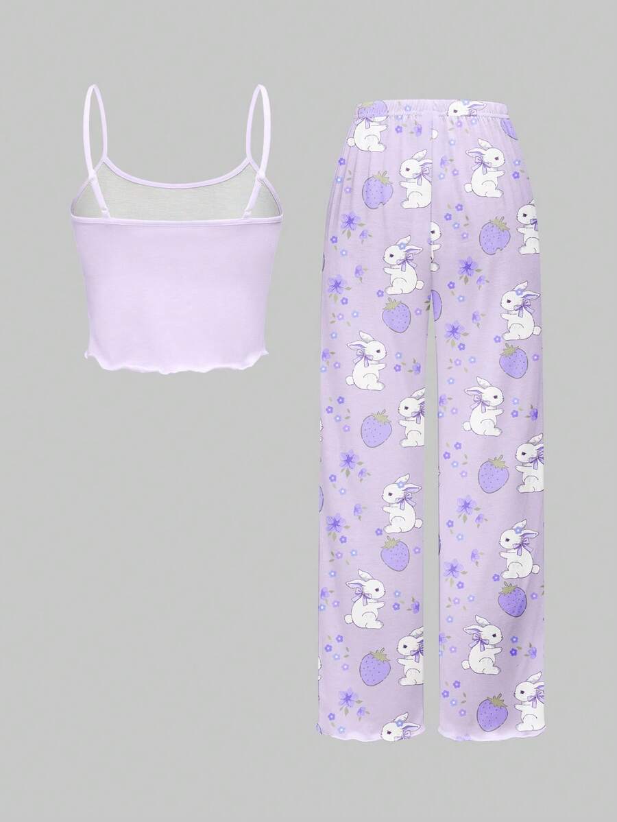 Kawaii Ensemble pyjama camisole et pantalon imprimé lapin mignon, tenue de détente casual