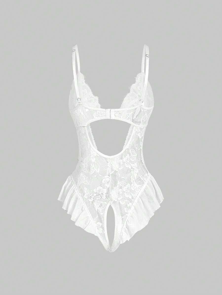 Kawaii Combinaison sexy avec nœud papillon en dentelle florale, sans entre-jambes, douce et attirante