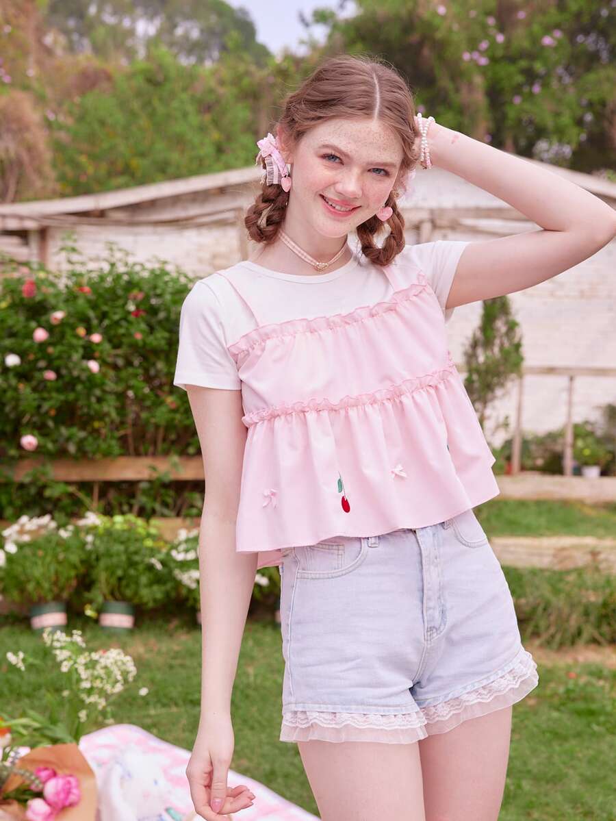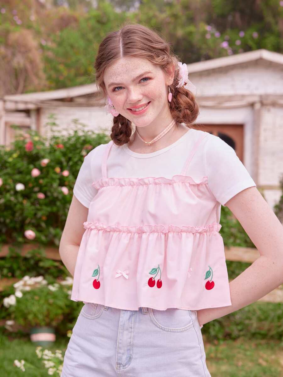 Kawaii T-shirt 2 en 1 lettre à broderie
