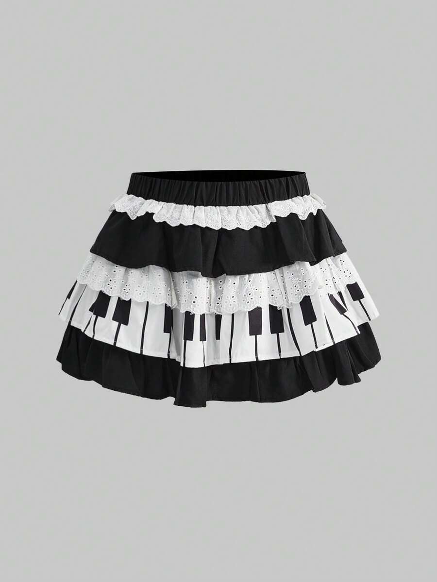 Kawaii Jupe de gâteau au clavier de piano mignonne et douce pour femmes de style Lolita