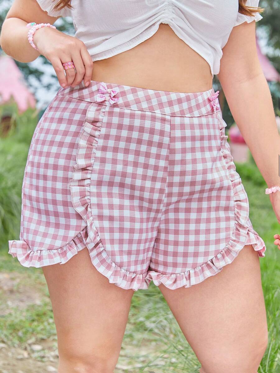 Kawaii Short À Carreaux À Volants