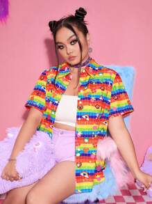 Kawaii Chemise À Rayures Arc-En-Ciel & Dessin Animé