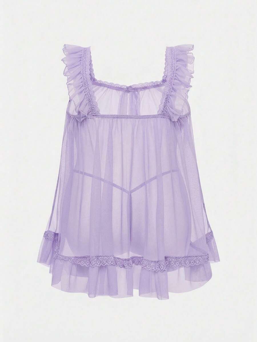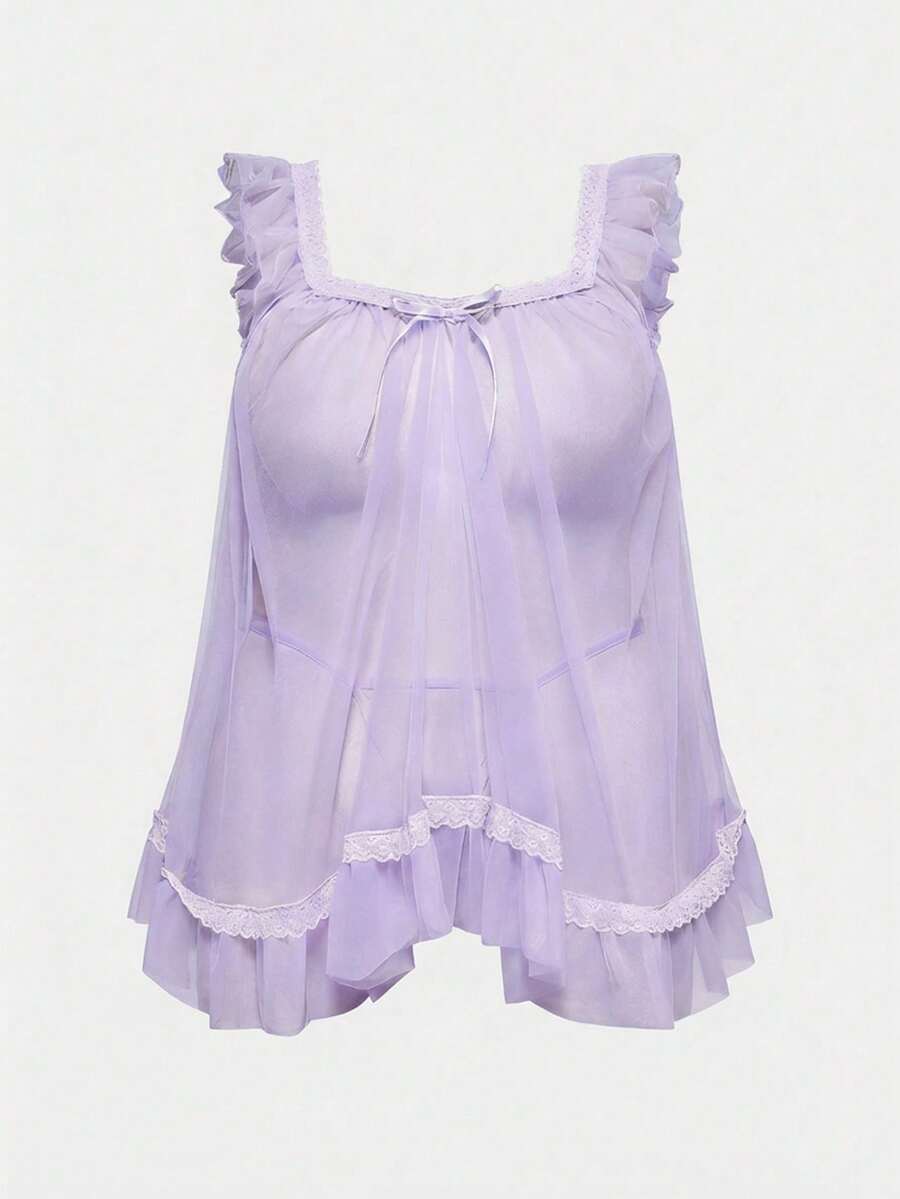 Kawaii Ensemble de nuisette transparente avec volants pour grandes tailles