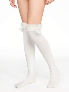 Kawaii Chaussettes chaudes montant au-dessus du genou avec décoration de pompon et nœud