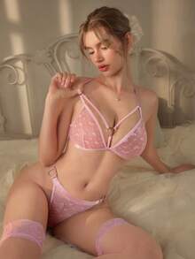 Kawaii Ensemble de lingerie romantique de campagne sexy avec un design de cœur croisé, convenant pour la Saint-Valentin