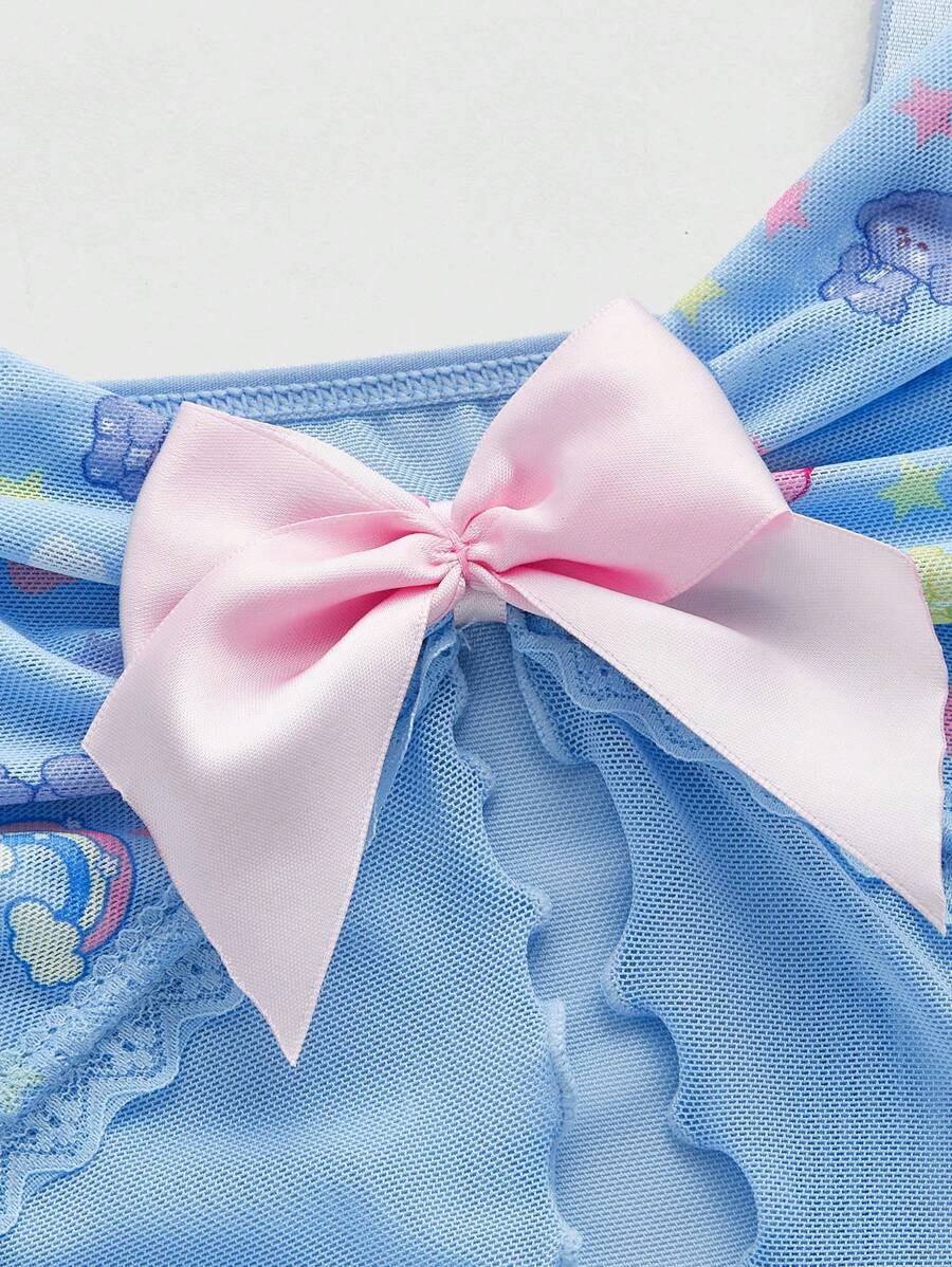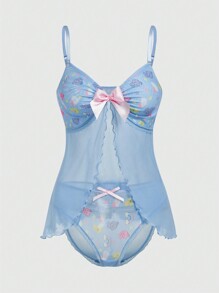 Ensemble De Lingerie Sexy Fendue Avec Décoration De Nœud À Bordure Festonnée Kawaii