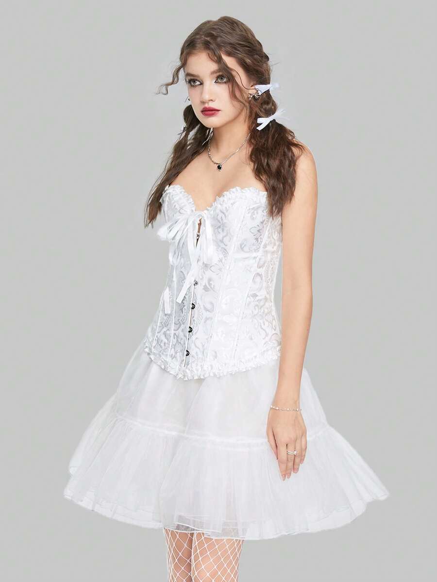 Kawaii Corset Volute En Jacquard À Plis À Lacets overbust