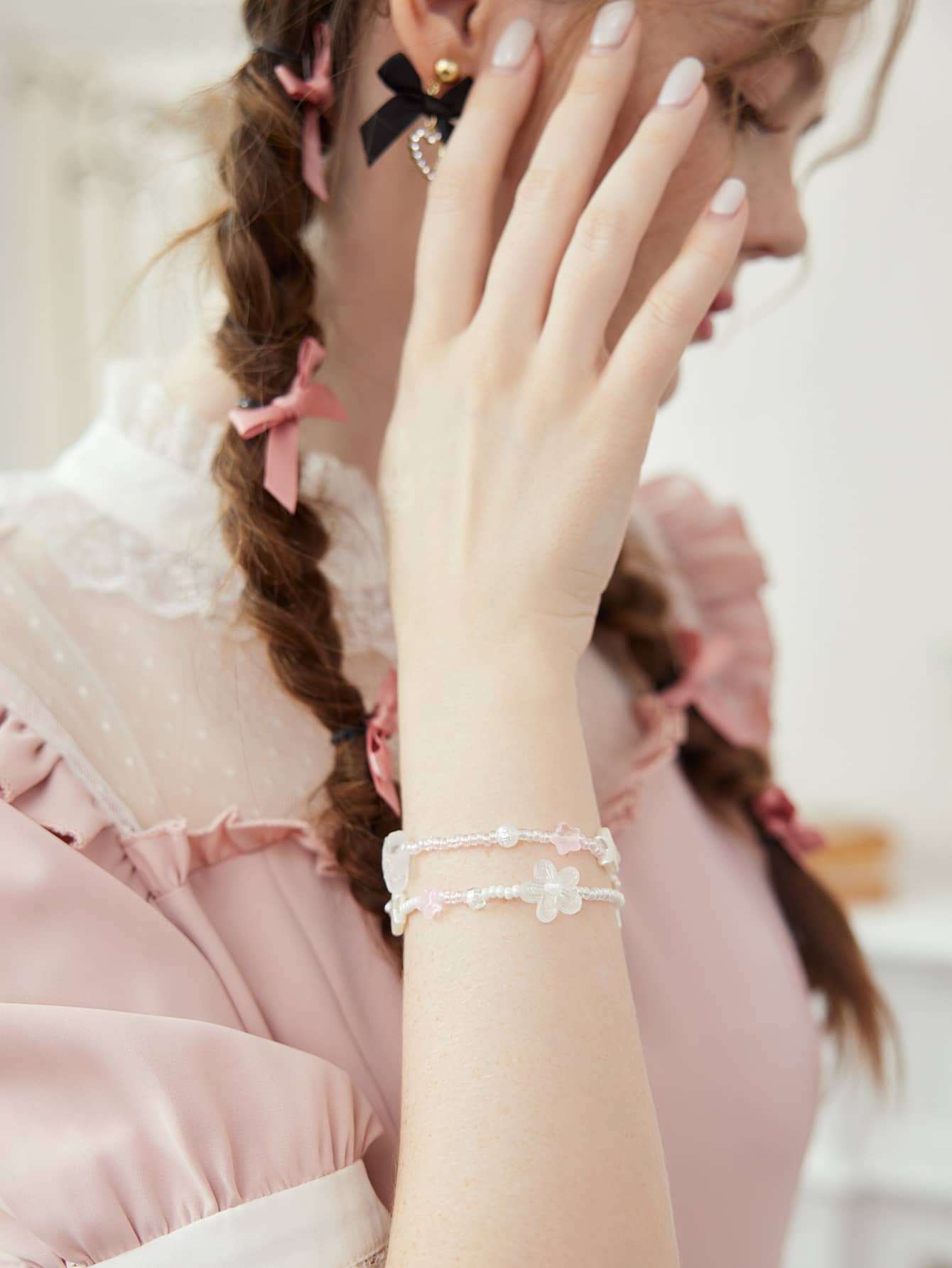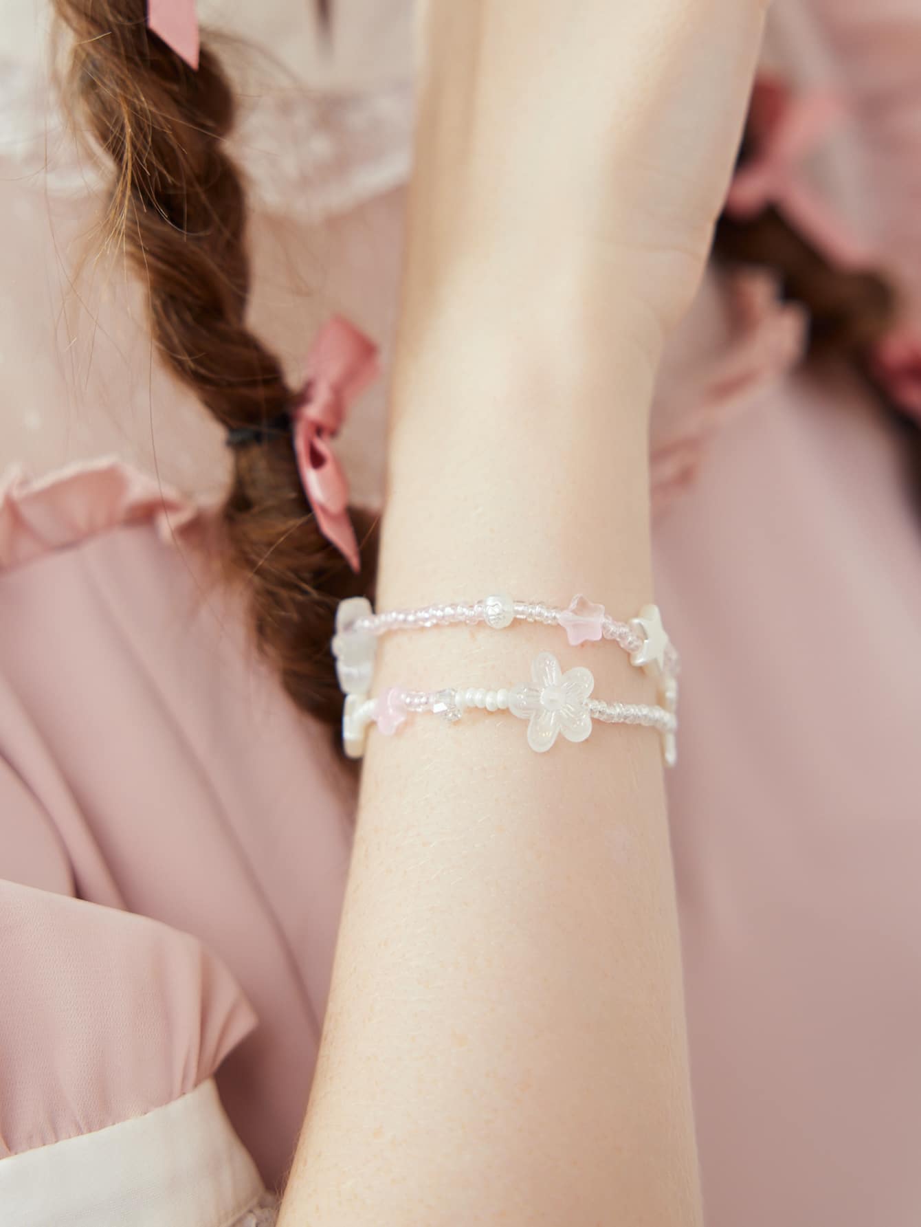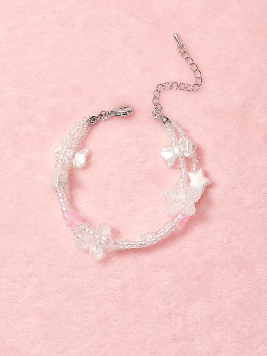 Kawaii Bracelet perlé étoile à fleur multicouche