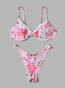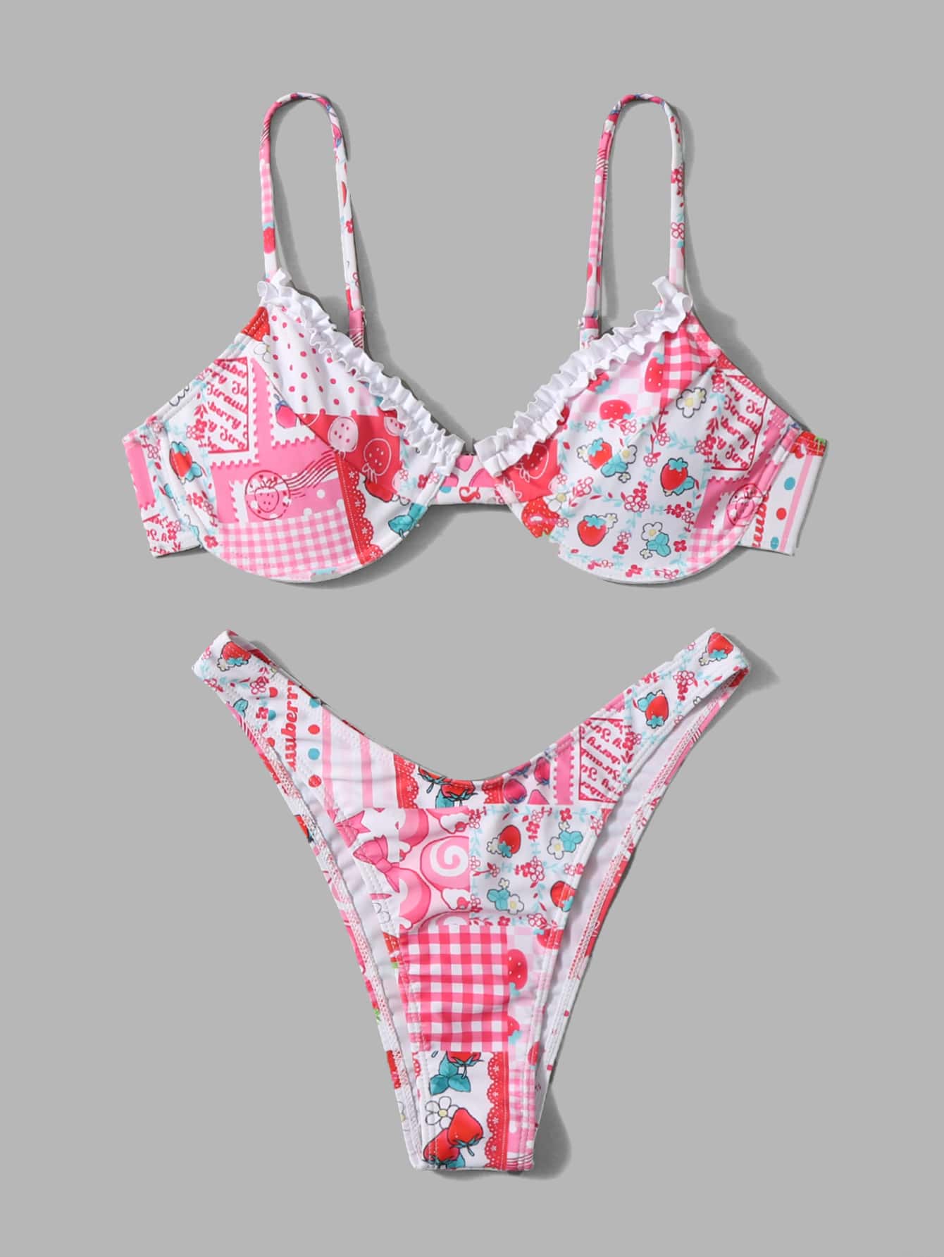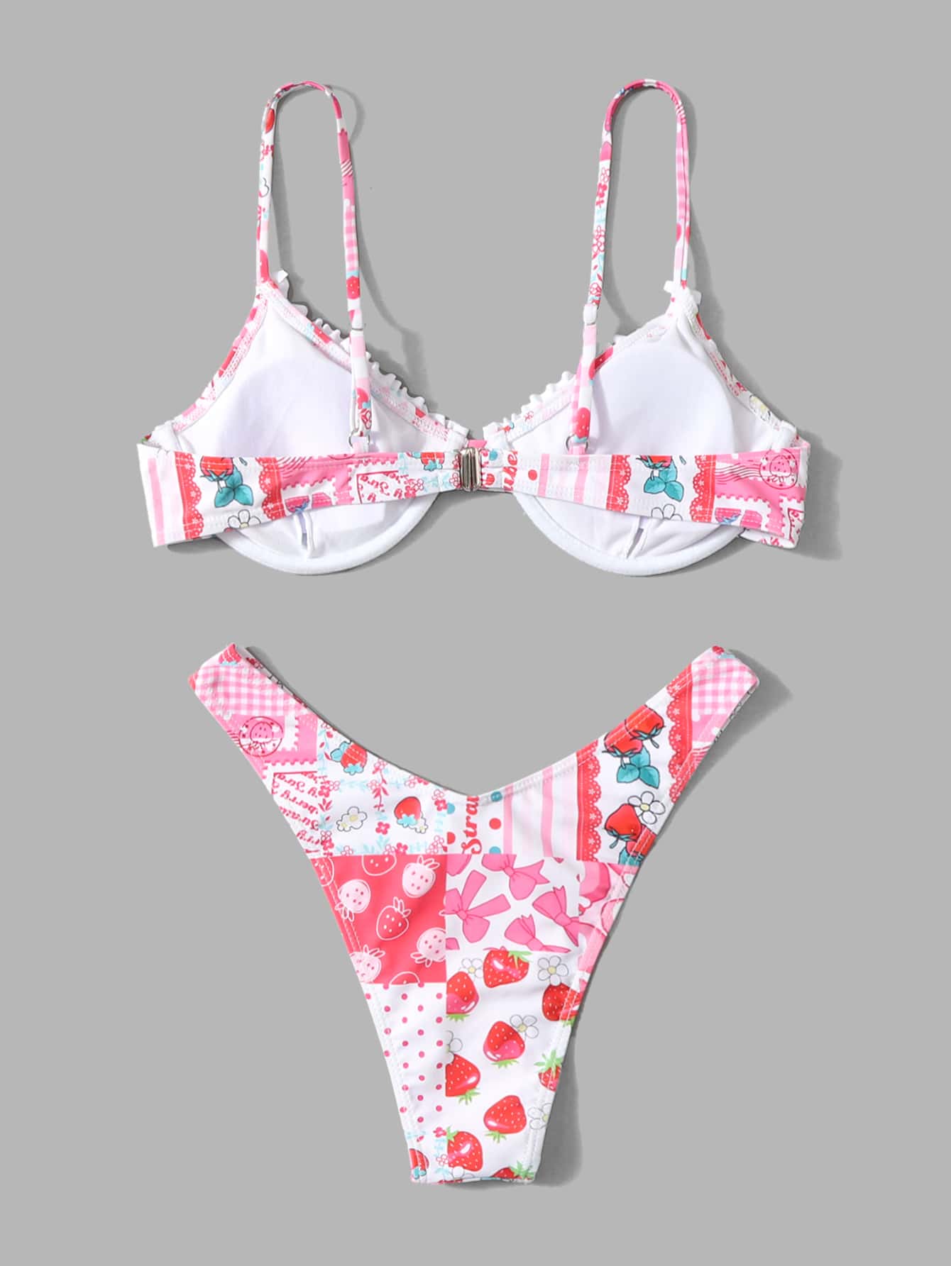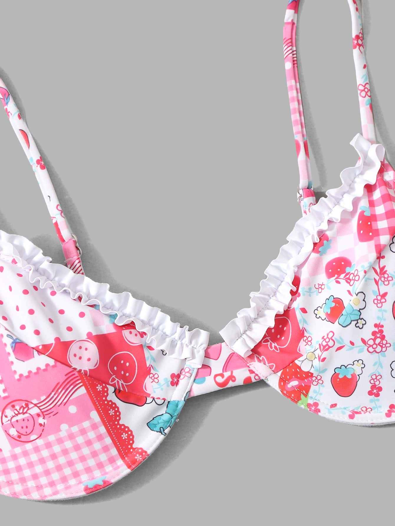 Kawaii Bikini imprimé fraise pour la plage d'été