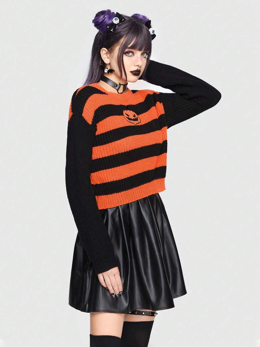 Kawaii Pull À Rayures Épaule tombante