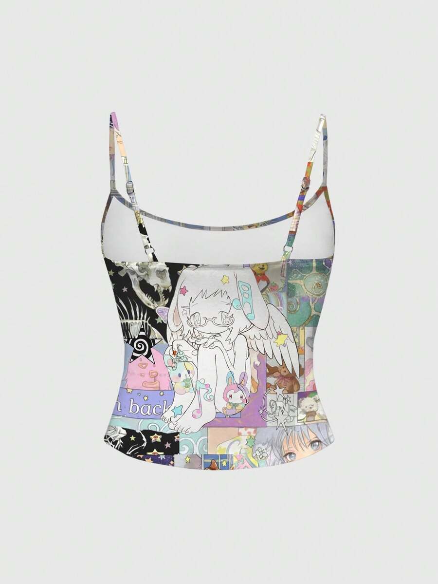 Kawaii Débardeur femme avec graphiques d'été mignons en style Y2K, patchwork d'étoiles, ailes coréennes et squelette de cœur vintage