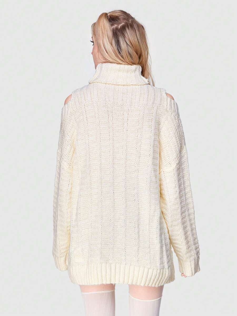Kawaii Pull À Col Roulé À Épaules Dénudées En Tricot Torsadé