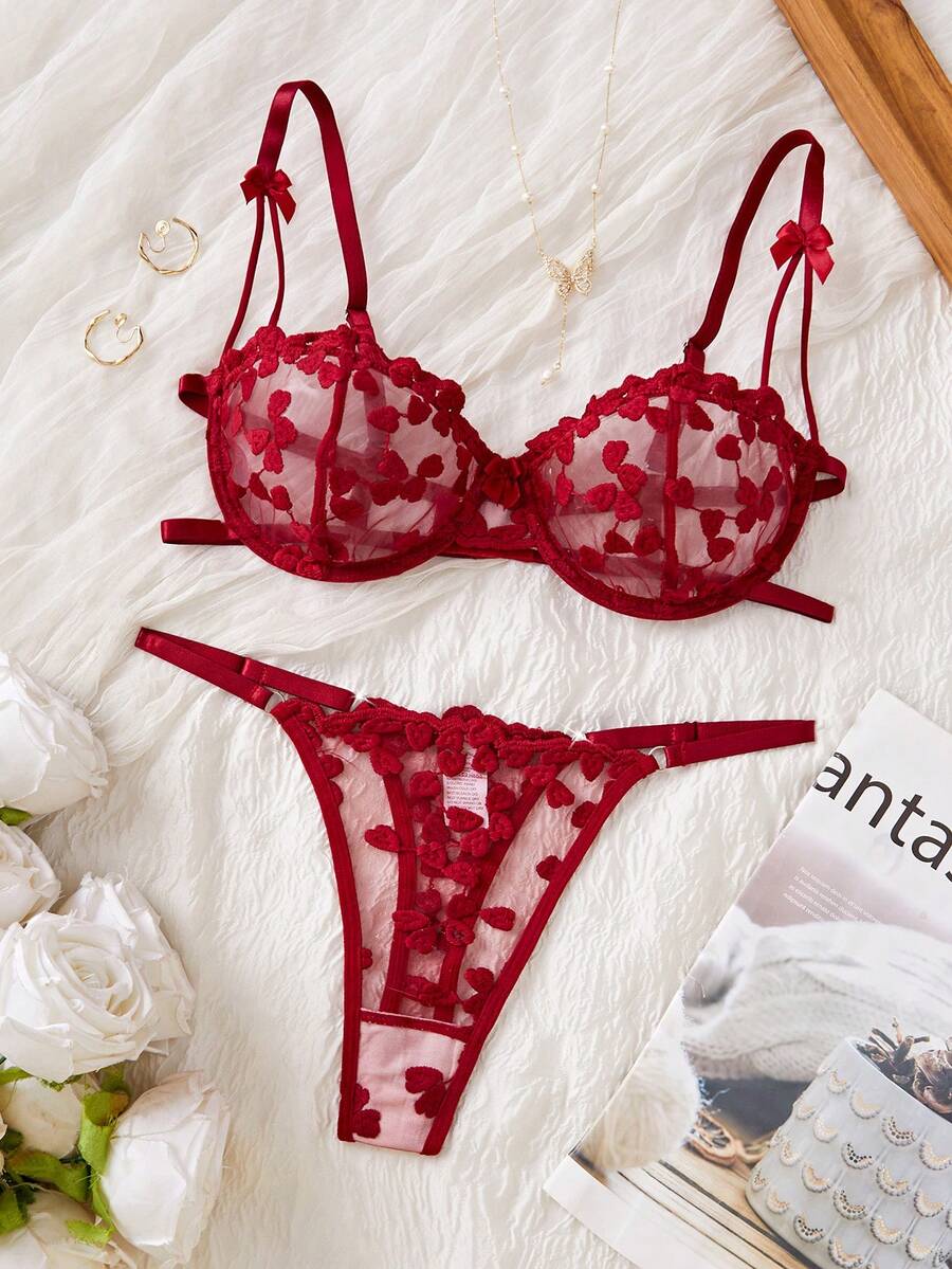 Kawaii Ensemble de lingerie sexy en maille brodée pour femmes