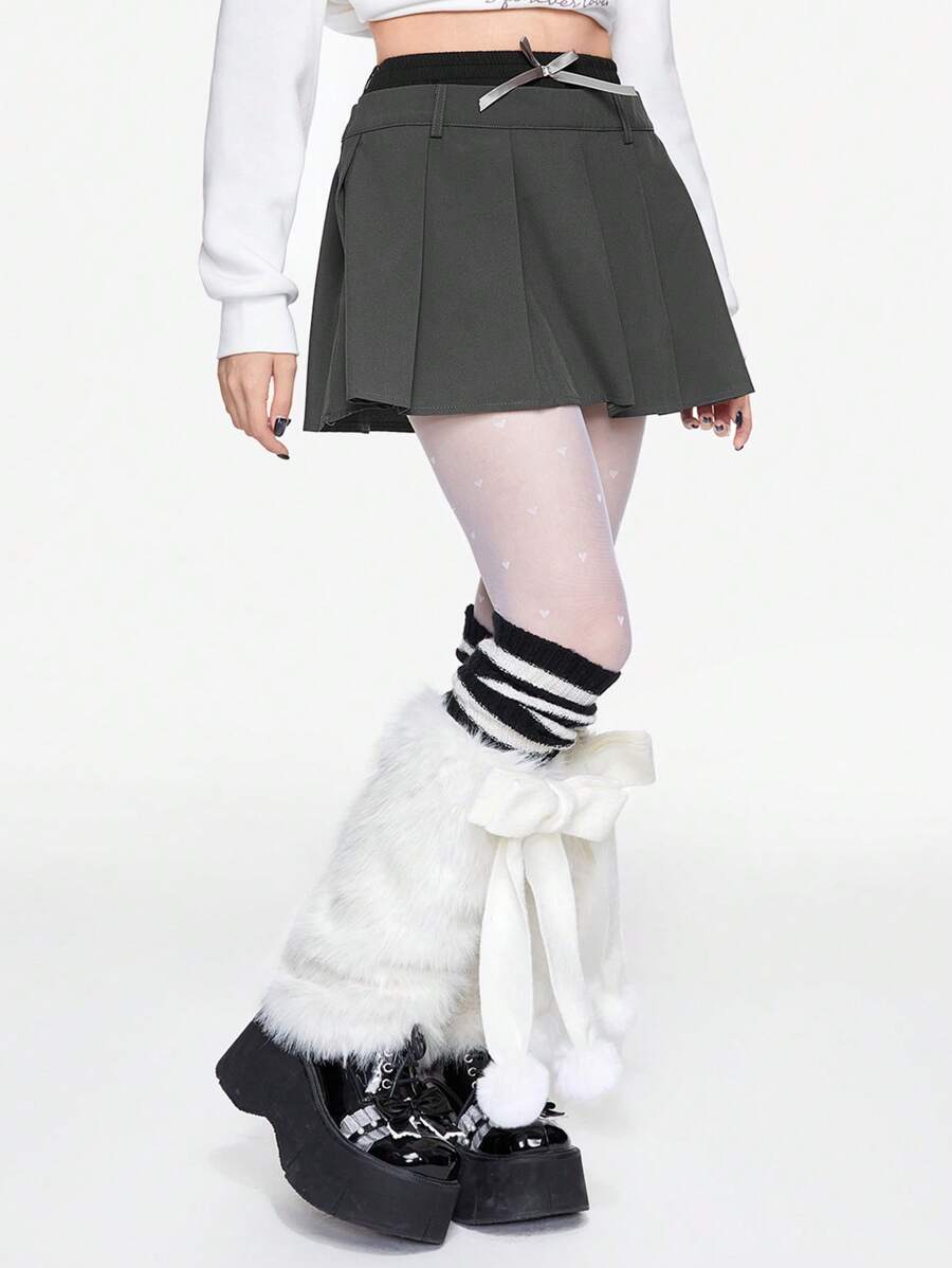 Kawaii Jupe mini plissée style Y2K preppy 2 en 1 avec éclair