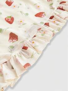 Kawaii Robe mini froncée avec nœud décoratif et imprimé de fraises pour femmes