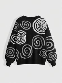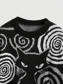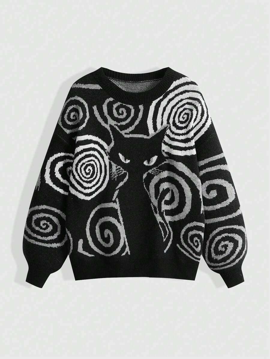 Kawaii Pull décontracté pour femmes avec motif tourbillonnant de chat, col rond à manches longues polyvalent