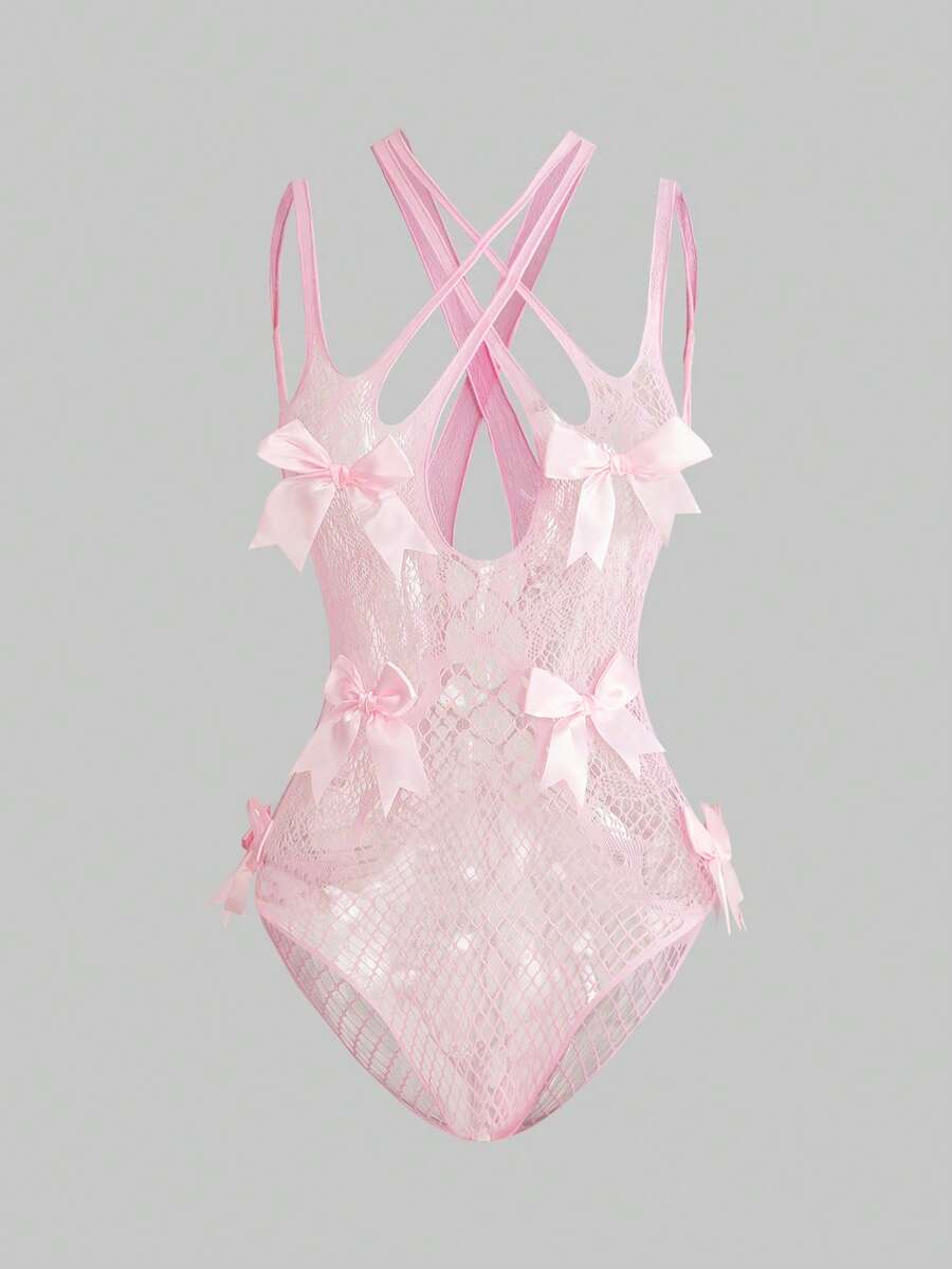 Kawaii Combinaison femme mignonne et douce avec décoration de nœud, en maille élastique