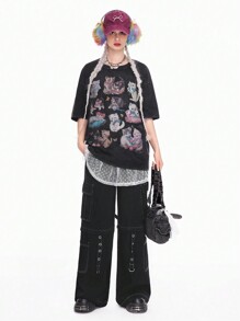 Kawaii T-shirt oversize graphique "Weird Girl" lavé à l'acide pour femmes