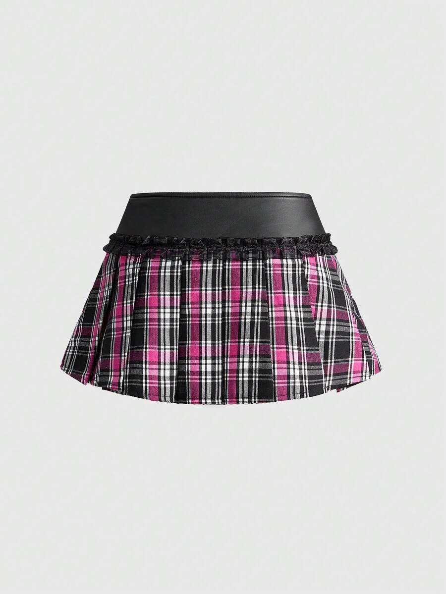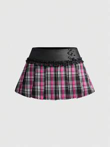 Kawaii Jupe mini à carreaux avec ceinture en cuir, style punk pour femmes