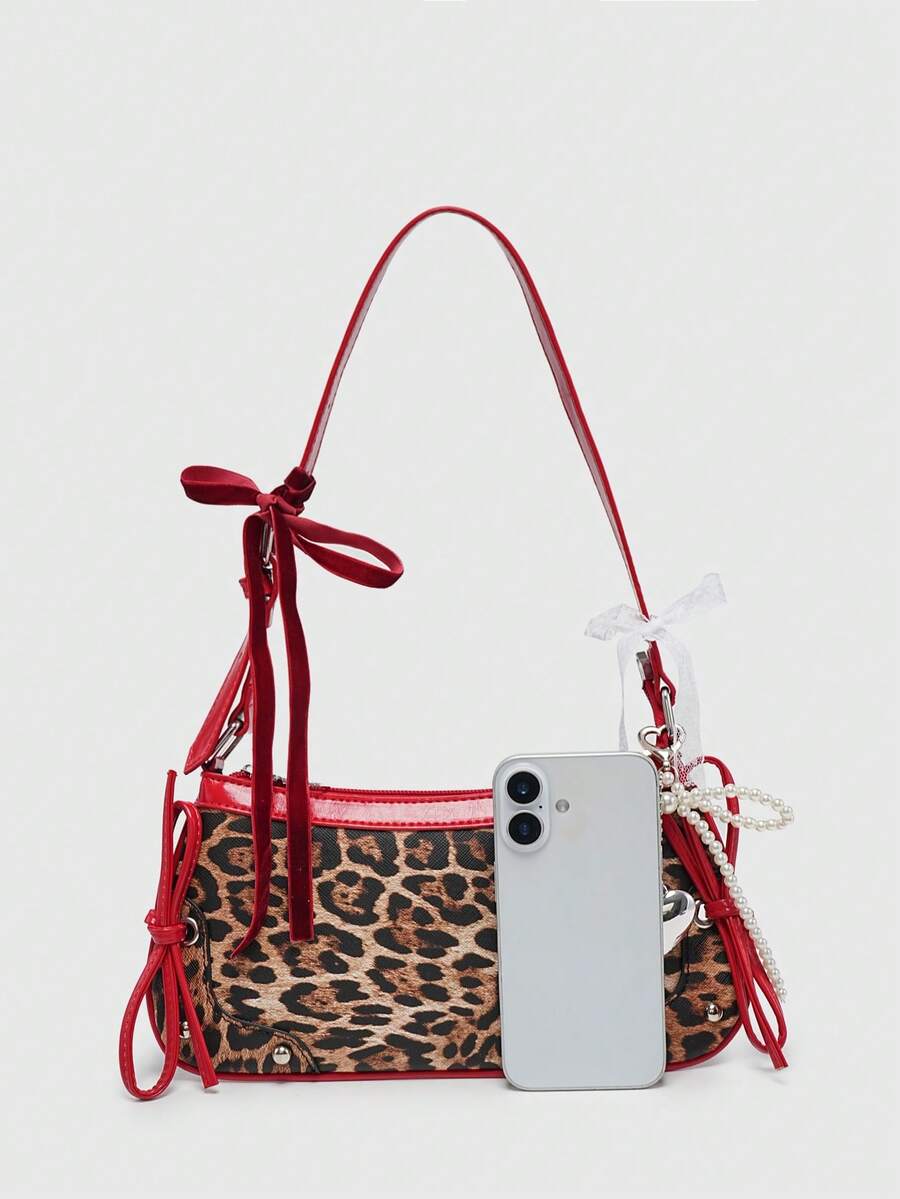 Kawaii Sac à bandoulière/sac aisselle style ballerine rétro pour femmes, décoré de papillon, imprimé léopard et faux perles. Sac à main femme imprimé animal pour l'automne-hiver. Nouveau sac femme imprimé tigre pour l'automne-hiver