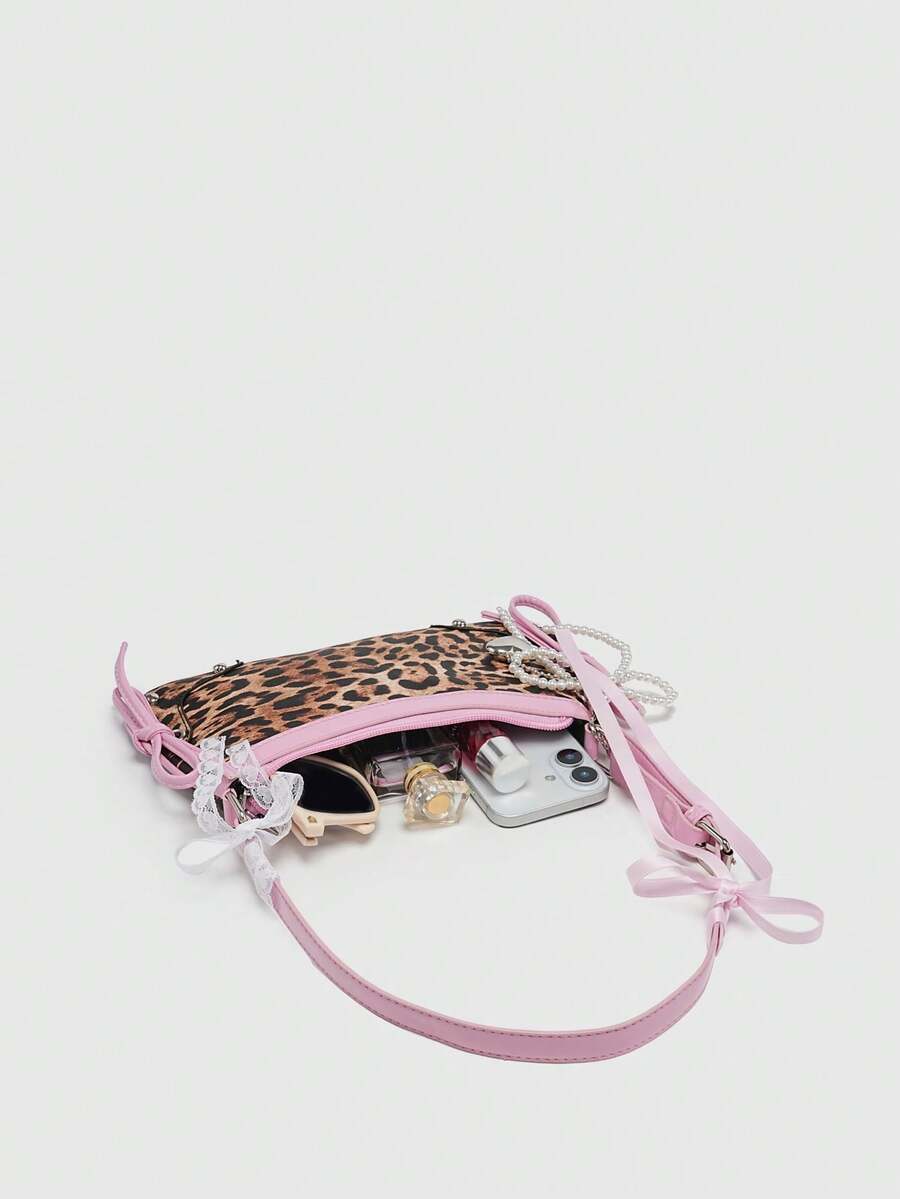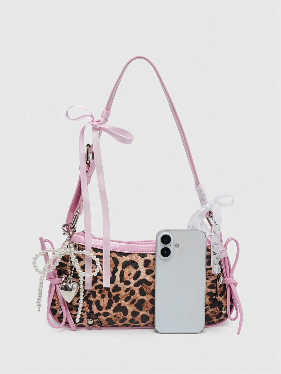 Kawaii Sac à bandoulière/sac aisselle style ballerine rétro pour femmes, avec décoration de chaîne, imprimé léopard et faux perles. Sac à main femme imprimé animal pour l'automne-hiver. Nouveau sac femme imprimé tigre pour l'automne-hiver