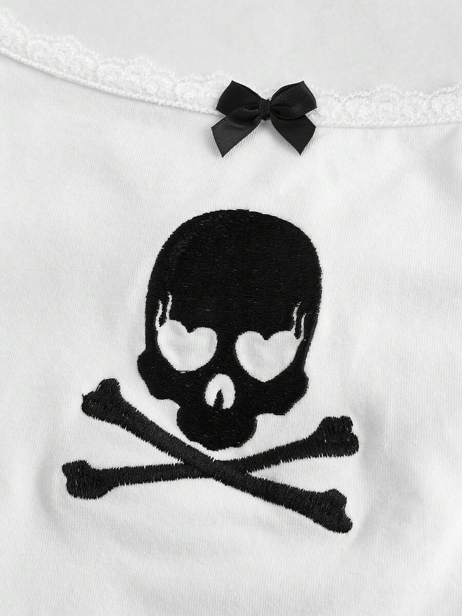 Kawaii Débardeur imprimé tête de mort pour femmes, décoration avec nœud, pour l'été