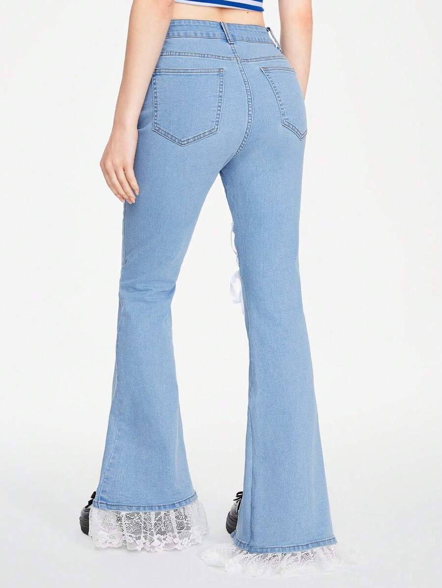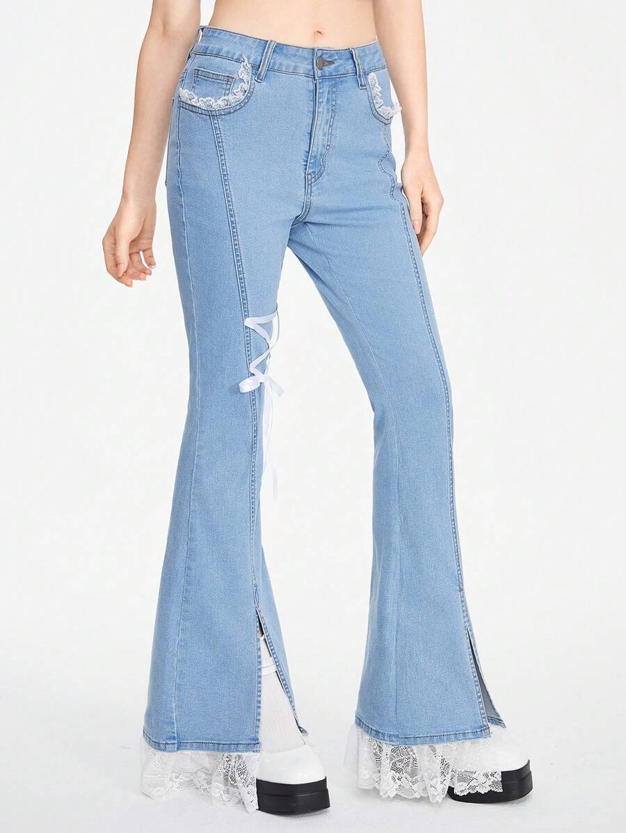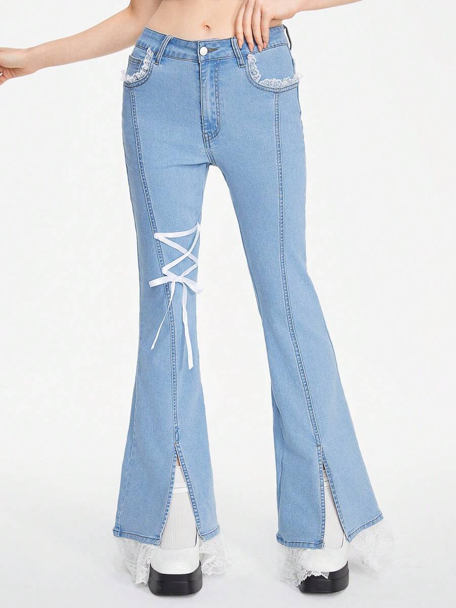 Kawaii Jean évasé Y2K à lacets croisés et fendus pour femme