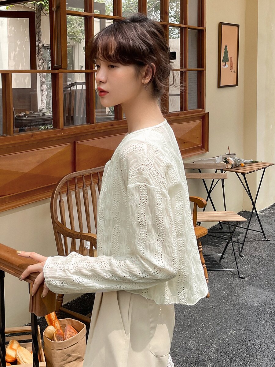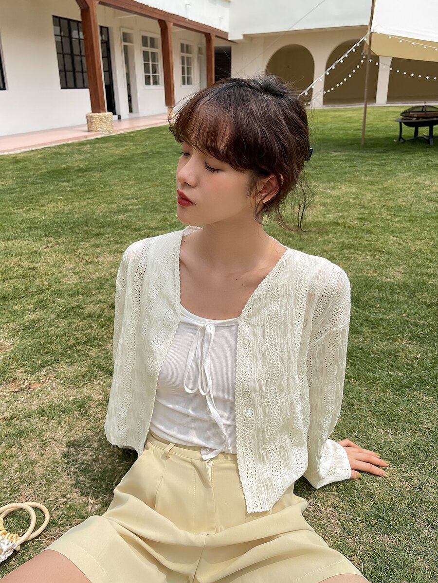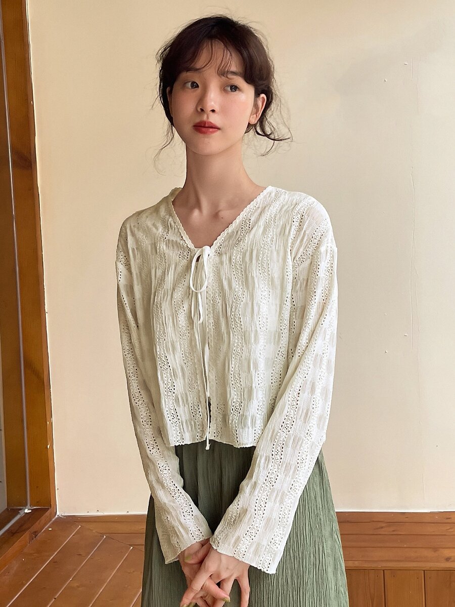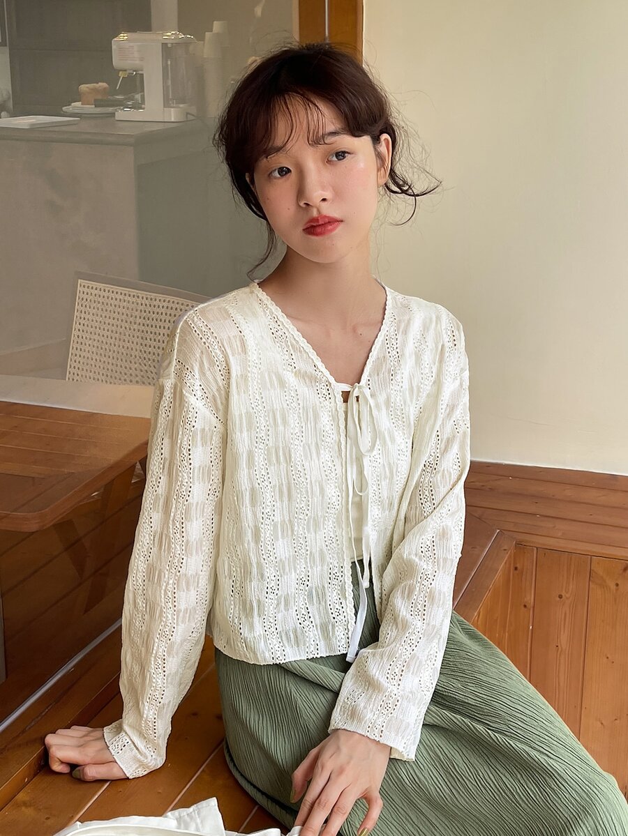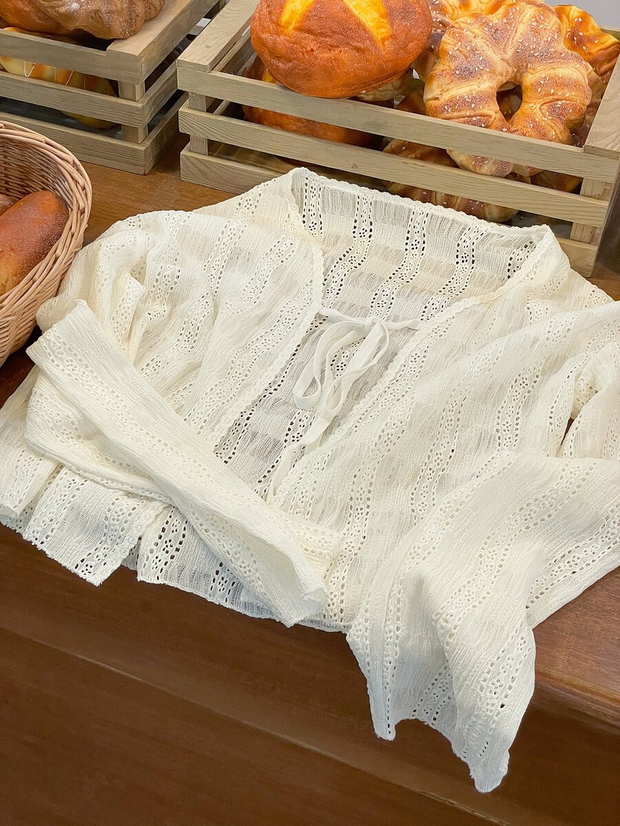 Blouse En Dentelle Avant Noué Sans Débardeur